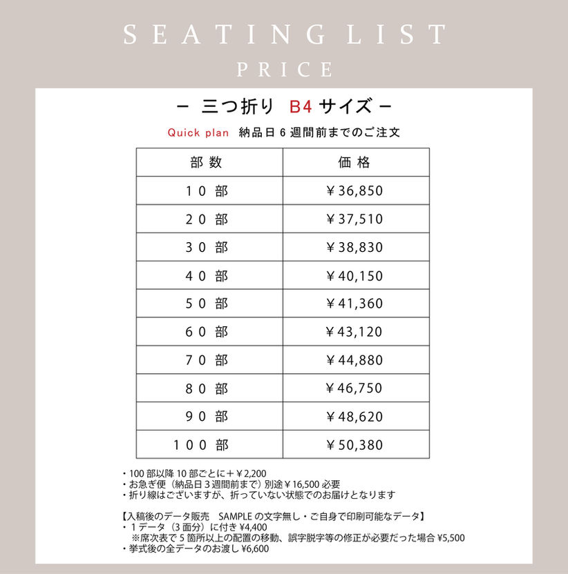 10部 ¥35,750〜 ※上記、画像内にある料金表をご照ください